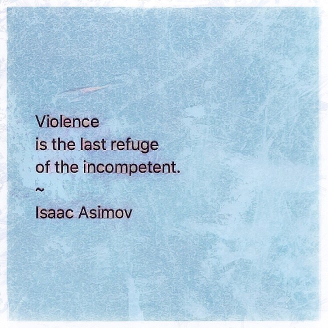 Sitting with this quote, recently: “Violence is the last refuge of the incompetent” (by Isaac Asimov) and I thought, “Should we expand our definition of violence?”