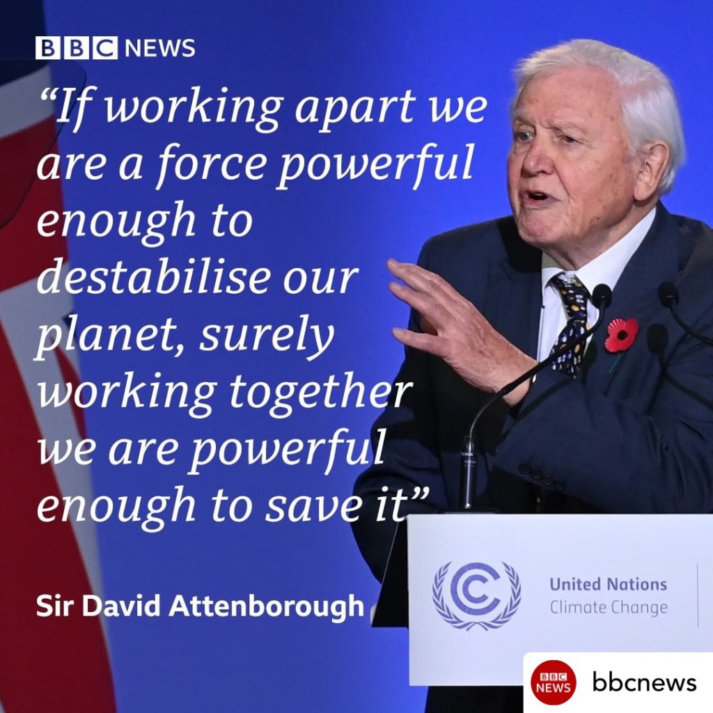 Posted @withregram โข @bbcnews Sir David Attenborough told world leaders at the COP26 climate conference that the future of young people should provide impetus to “turn tragedy into triumph” on climate change.