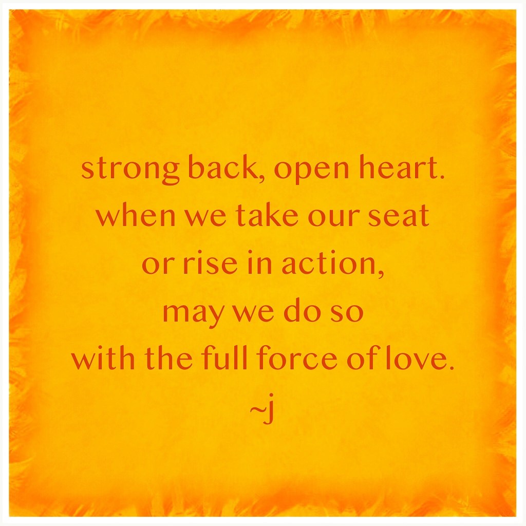 we sit upright with confidence and dignity, with an open heart and humility, breathing in and out with awareness, attentive to the present moment, not lost in distraction, or grasping, or aggression.