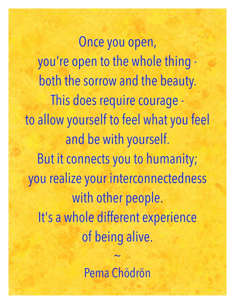 #OpenHeart #presence #courage #bravery #curiosity #understanding #empathy #compassion #love #interconnected #human #life #path #practice #PemaChodronQuote #JinpaLhaga