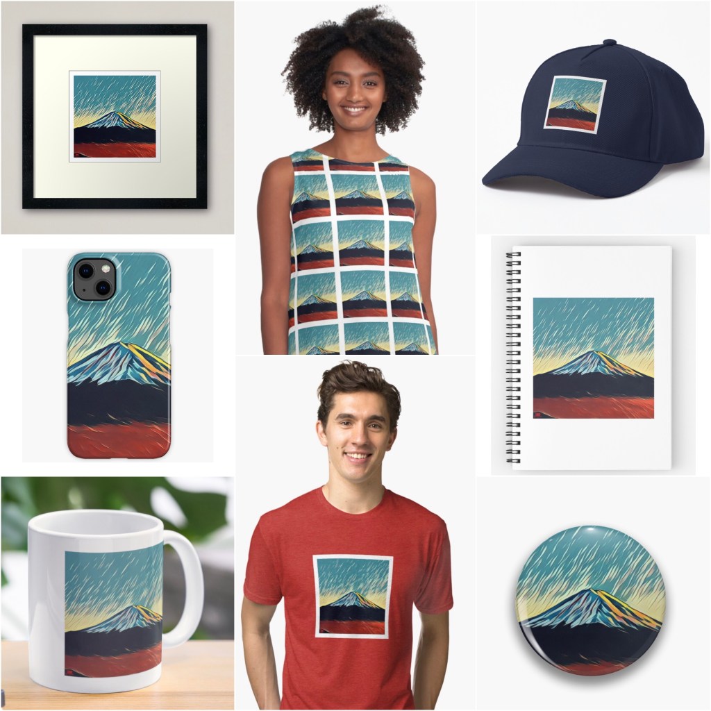 *stickers, magnets, posters, unframed/framed prints, mugs, t-shirts and many more items featuring my Mount Fuji digital art can be found at my JMWart Redbubble store. link: JMWart.redbubble.com