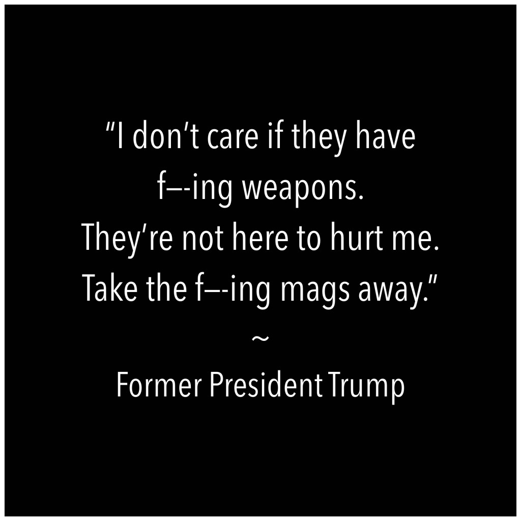 …in reference to the thousands of individuals who refused to go through magnetometers (mags – metal detectors) in order to enter the official rally space. individuals who were carrying weapons including AR-15s, other firearms, knives, spears, flagpoles with spear tips. individuals that Former President Trump wanted to be let into his official rally space regardless of the weapons.