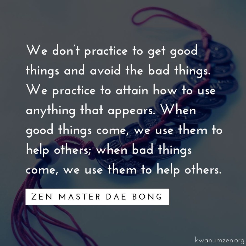 “We don’t practice to get good things and avoid the bad things.” Quote by Zen Master Dae Bong.