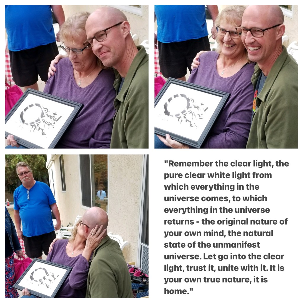 i’m including some pictures, the last i have with her, from their send off to Pahrump. i gave her an enso calligraphy for her new home as a going away and housewarming gift. it reads: