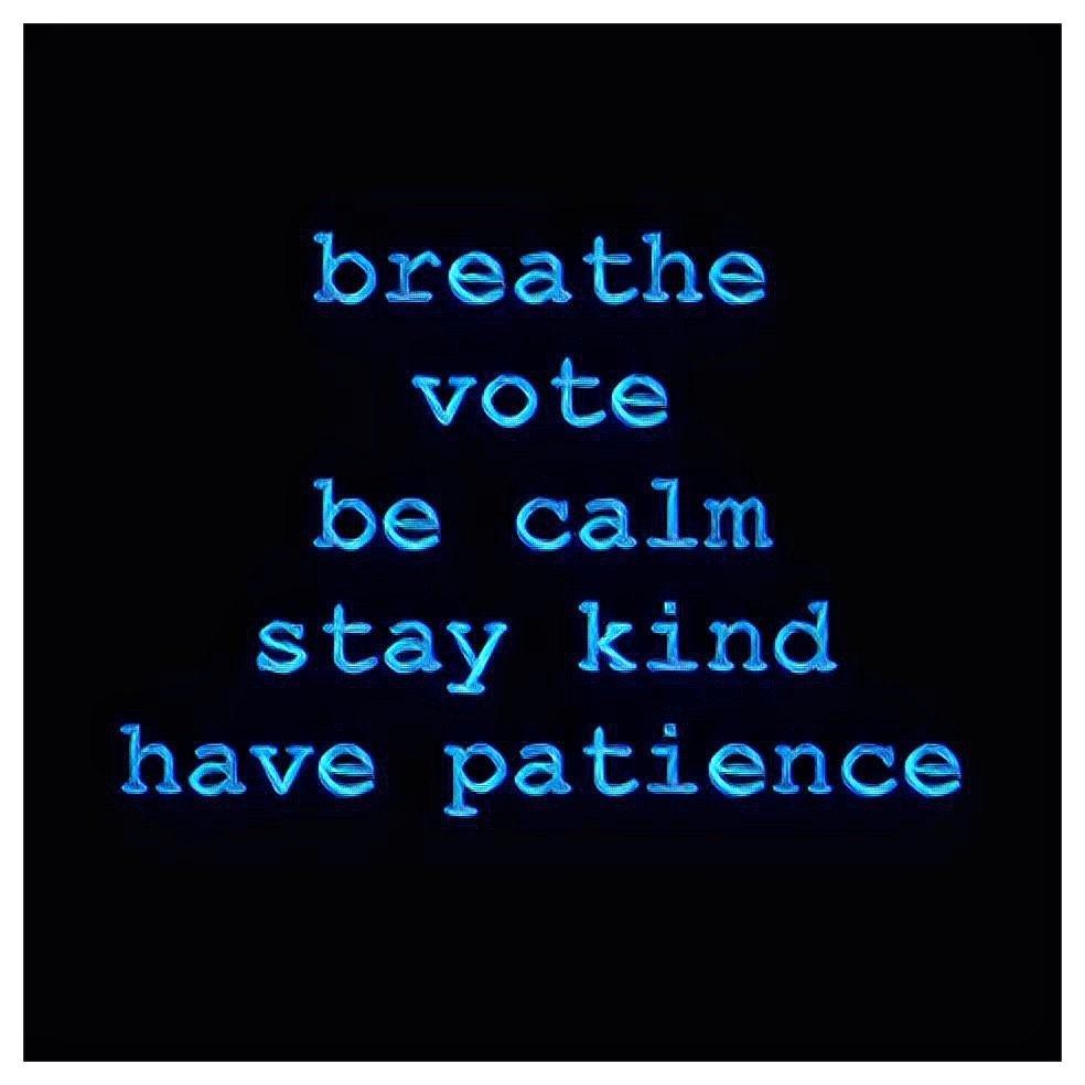 unless there is an absolute blow out by one of the candidates (which is unexpected) today, we won’t likely know the results/winner of this election until tomorrow or even later in the week if the incoming results are close (which is expected). SO my friends, practice your breathing, having a calm steady mind, stay kind to yourself & those around you, & practice having patience as every vote is counted. WE WANT EVERY VOTE COUNTED. that is what democracy is. so if a certain candidate claims victory early (as he did in 2020) & calls to stop counting votes (as he did in 2020), see it for what it is & stay focused & support the electoral processes of our democracy.