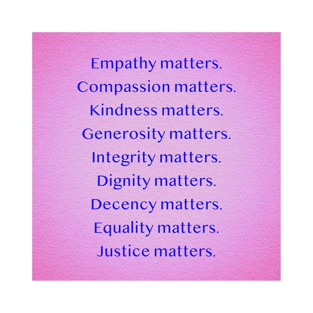 #empathy #compassion #kindness #generosity #integrity #dignity #decency #equality #justice #values #principles #LiveByVow #OpenHeart #path #practice #JinpaLhaga #JMWart