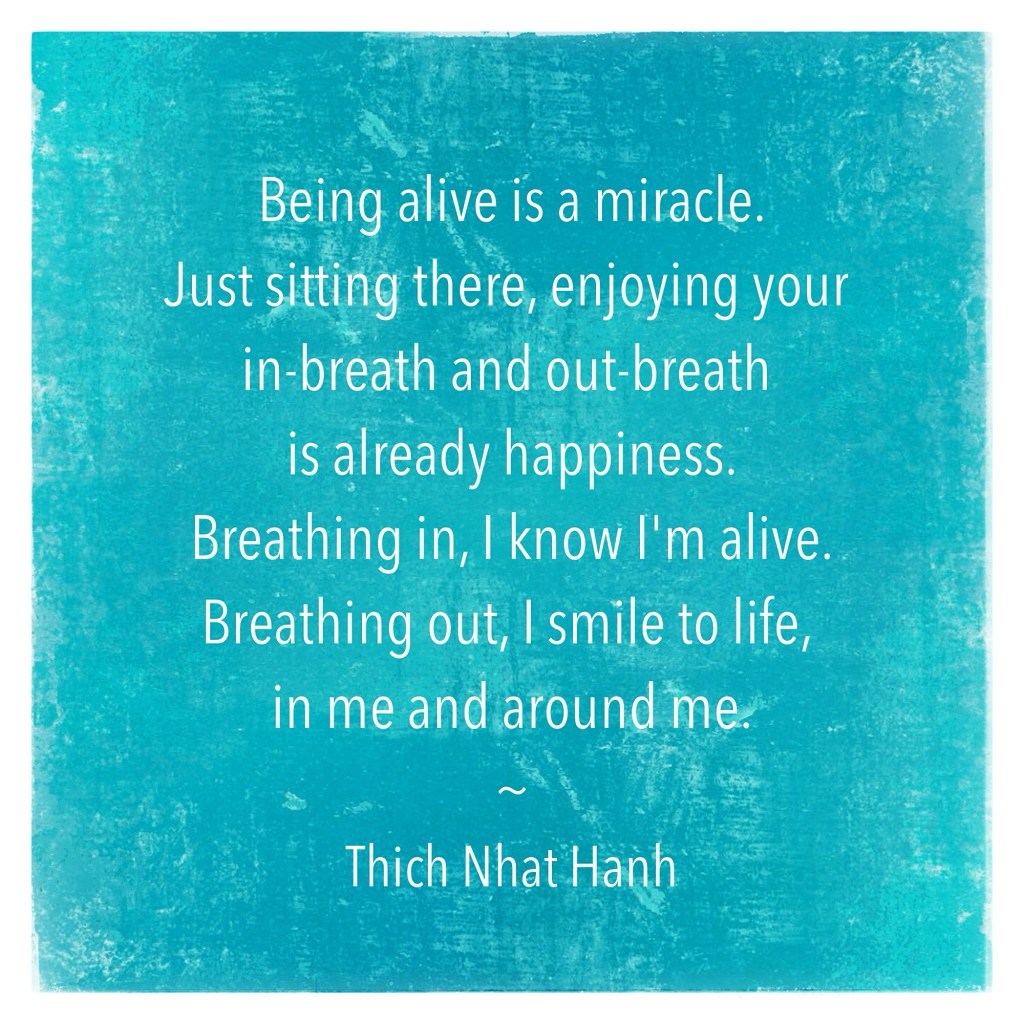 so whatever is happening, whatever challenges we are facing, we can take a moment to come home to this truth, this truth that is no further than our next in and out breath – we are alive. may we allow ourselves to enjoy this. and may we make it a practice to do so.