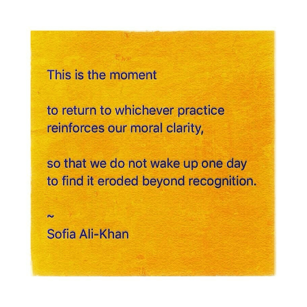 “This is the moment to return to whichever practice reinforces our moral clarity, so that we do not wake up one day to find it eroded beyond recognition.”
