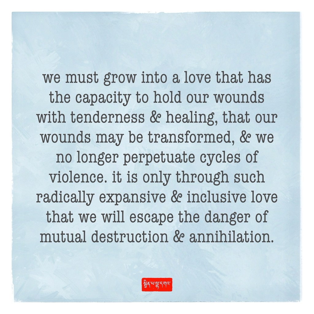 we must grow into a love that has the capacity to hold our wounds with tenderness & healing, that our wounds may be transformed, & we no longer perpetuate cycles of violence. it is only through such radically expansive & inclusive love that we will escape the danger of mutual destruction & annihilation.