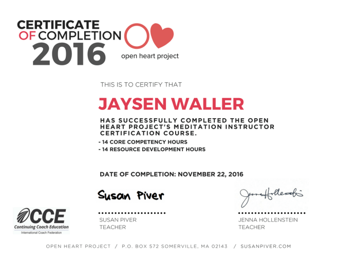 I cannot adequately express my gratitude or how amazing the past 9 weeks of training have been with Susan, and Jenna Hollenstein who co-taught. Their generosity of heart, the knowledge and wisdom imparted to us, and the gentleness of this practice transmitted to us has been a gift. I made friends from around the world that I will now be connected with and the practice I love and is a refuge has deepened. I am humbled, honored and grateful to share this with others. Bows of gratitude to both Susan and Jenna, along Michele Gare who was the magic behind the scenes at The Open Heart Project.