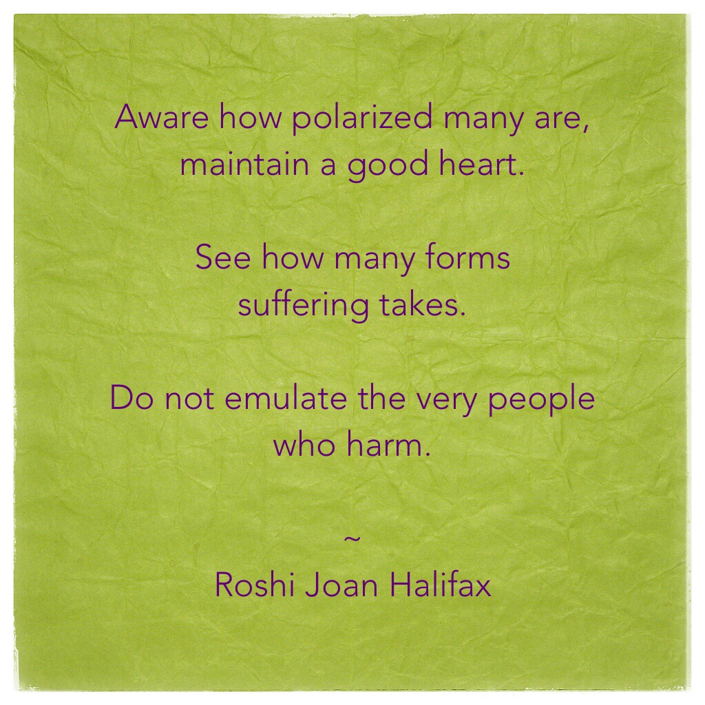 may we remember who we are, our interdependence. my we listen and try to get to the root of anger that it may be transformed and healed rather than transmitted, giving birth to more anger, aggression, and violence.