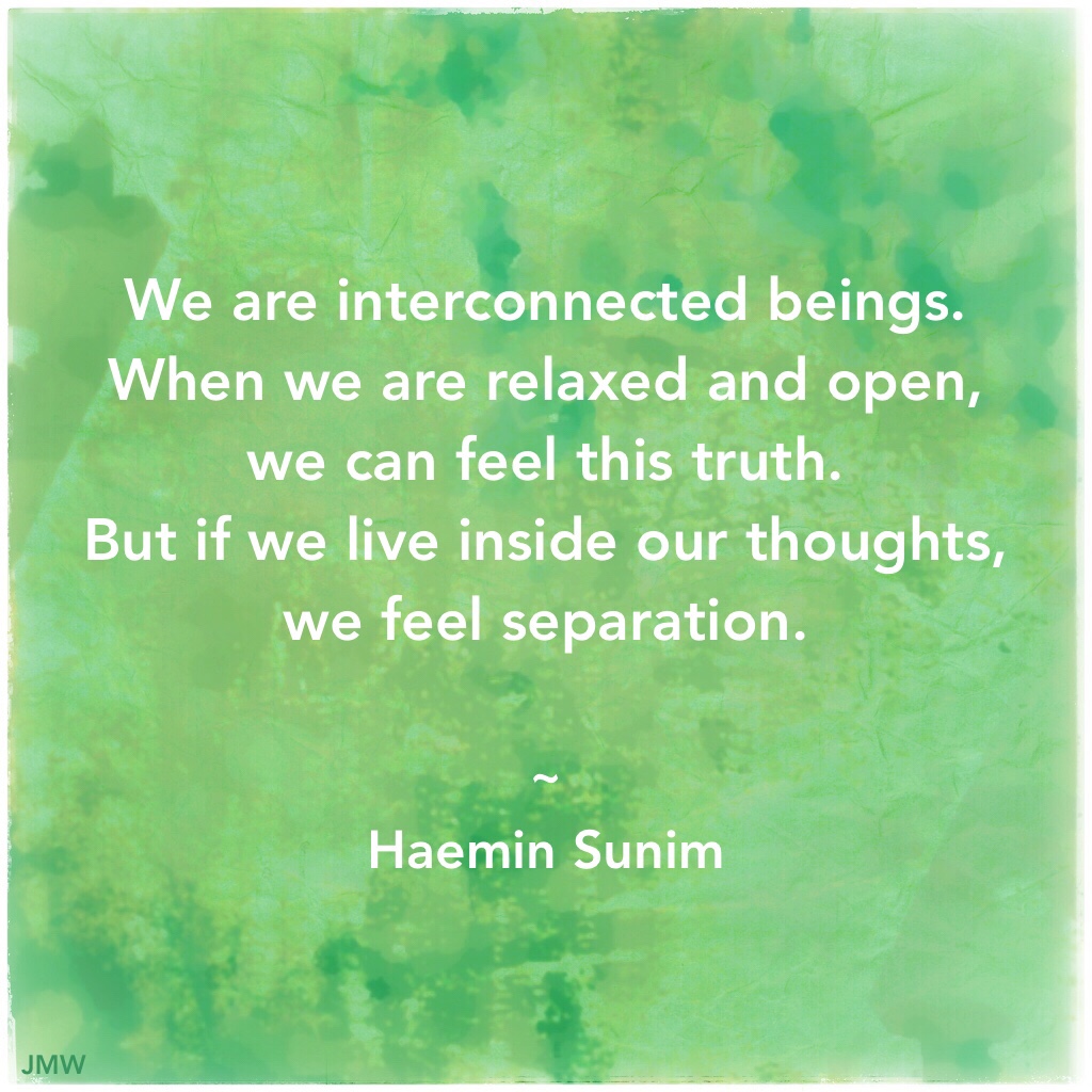 this quote very well may sum up enlightenment or waking up, for me – to live authentically, to be in authentic relationship with the arising and passing life around us, to not fold up or close up in fear or anger, but to remain open – both heart and mind – courageously loving all that is suffering.