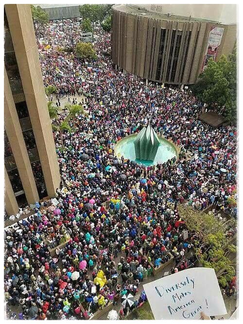 it is still so necessary. the attack on our lands, on immigrants, on others in the margins – Muslims, people of color, women, LGBTQ, elderly, poor, sick is ongoing. not always in big ways, but in little ways chipped away and ignored with more salacious headlines. the Russia issue continues to reveal that it is much deeper and goes much further than thought. and a twitterstorm of fake news, insults, continues to stream out of phone coddling fingers of a leader who golfs and holds court at his private resort every weekend.